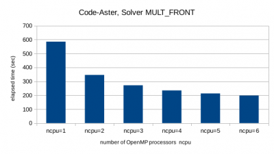 When doing the same kind of comparision for extremly large models MUMPS (Code-Aster) is even more advantageous in terms of elapsed time due to it's scalability with MPI. The problem of the increasing demand of RAM can be attenuated by distributing the calculation over different computing nodes of a cluster.