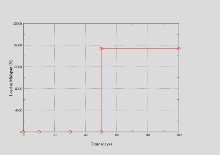 - at t = 50 days: the static load is applied bending the beam instantaneously down