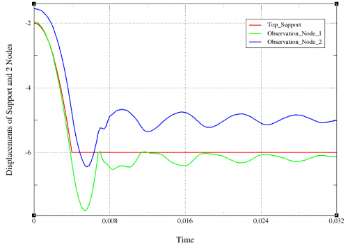 Figure 1 shows the displacement of the top support and two observation nodes over time.
